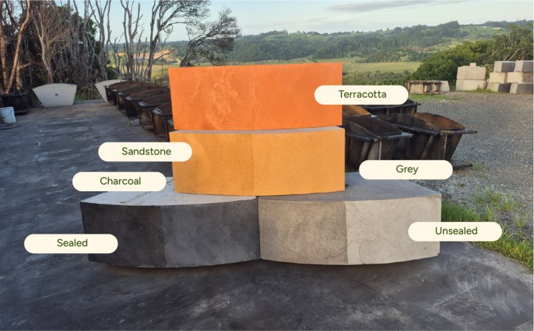 - Blocks come in a range of colours and exposed aggregate finishes.